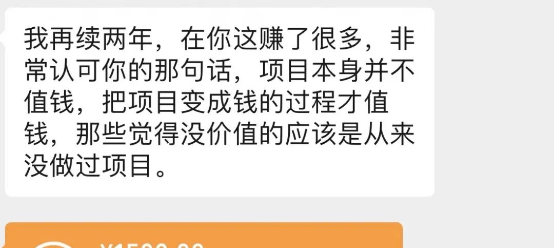 上面那个圈友说的一句话我也很认可,也是我一直在说的一句话:项目本身并不值钱,值钱的是把项目变成钱的过程。