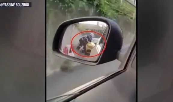 当地时间6月29日晚上,旅游巴在距离马赛酒店还有不到2公里时,一名当地青少年冲着旅游巴摇手,示意司机不要再往前开。