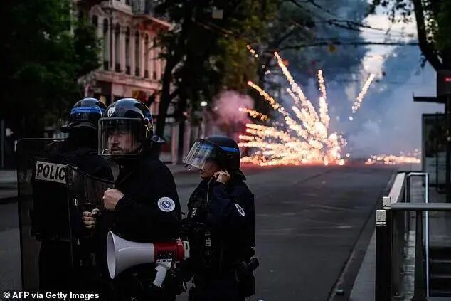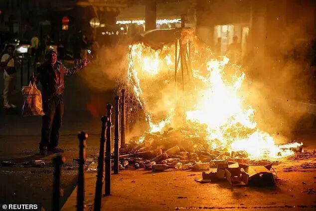 还有人焚烧路边的障碍物,汽车、垃圾桶、建筑物无一幸免,甚至还投掷烟火和鞭炮。