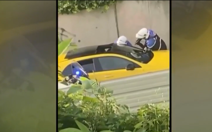 堵车期间被警察持枪截停,当时其中一个警察拿枪指着孩子,对方拒绝停车之后,就开枪了。