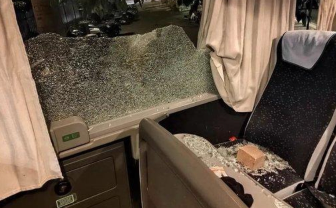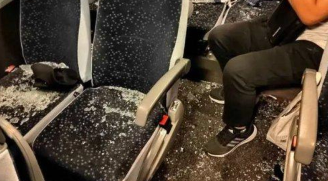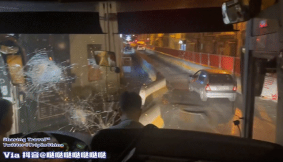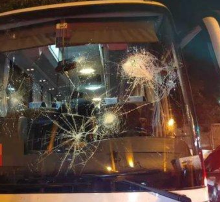 由于巴士被石块和金属棒砸碎,部分乘客受伤。