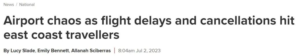 澳洲九号台新闻7月2日报道称,澳洲东海岸各机场连续第三天出现大面积延误,悉尼、墨尔本及布里斯班机场料将受到影响。