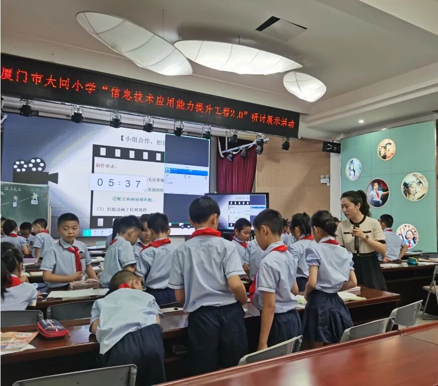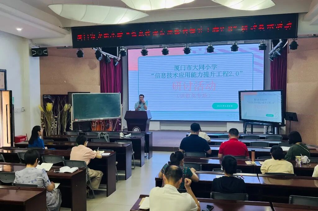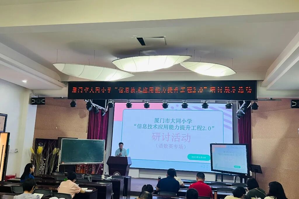 思明区教师进修学校郑仁凯老师莅临现场指导,并传递了技术赋能聚焦人的发展,改变教师的思维模式、课堂的教学模式、学生的学习场域、营造教学新样态,促成师生新发展的理念。