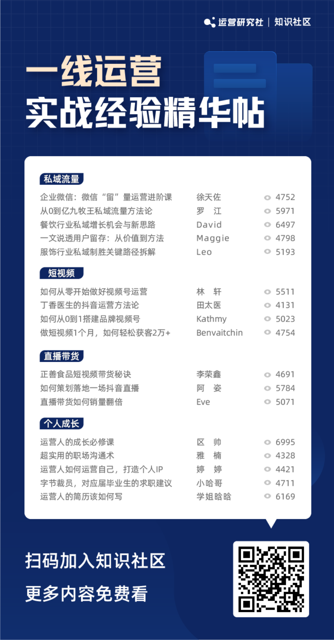如果你还不太了解「运营研究社」知识社区,不用担心,继续往下看看叭~