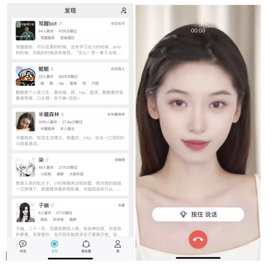 这款“克隆人”所在的 App,是由小冰公司推出 X Eva,这是一个全由“克隆人“组成的世界,每个 ID 后的身份、性格和对话风格不同。有的是由用户自行定制,比如“霸道总裁”、“病娇女孩”、“贴心男友”等角色,还有类似 “骂醒 bot”、“代写检讨信”等功能性形象。