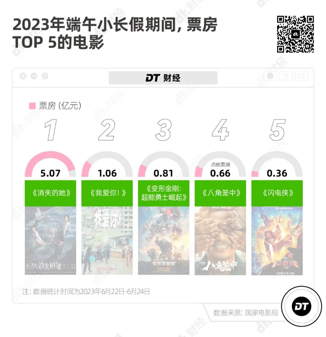 国家电影局数据显示,端午档期间票房前5名里,国产片占比高达80.08%。《消失的她》以5.07亿元排名第一。好莱坞大片《变形金刚:超能勇士崛起》和《闪电侠》虽然排在第三、第五名,但在端午期间,票房没有过亿。