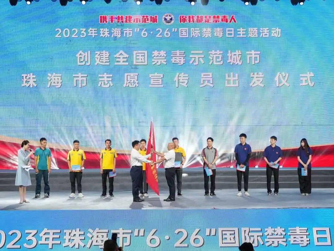 广东省珠海市外伶仃邮政营业所营投员谢坚参加珠海市“6·26”国际禁毒日主题活动,作为创建全国禁毒示范城市“珠海志愿禁毒宣传员”代表,谢坚接受珠海市委副书记、市长黄志豪授旗。谢坚表示,要积极向人民群众做好“禁毒+普法”宣传,传导“健康人生,绿色无毒”正确理念,树立正气,抵御邪气,助力推进禁毒攻坚行动和全国禁毒示范城市创建工作走深走实,坚决打好打赢新时代禁毒人民战争。