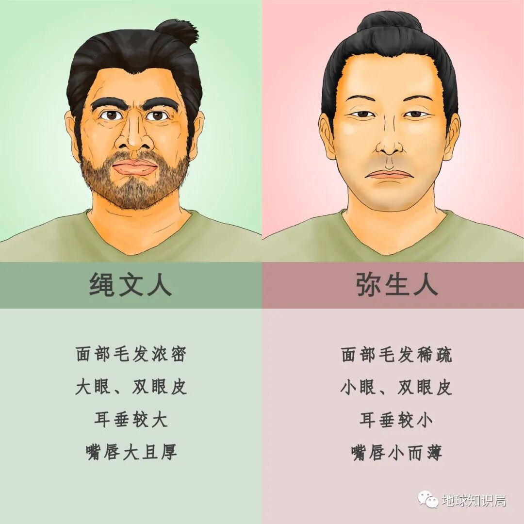 绳文人和弥生人的面相特征(仅示意)▼