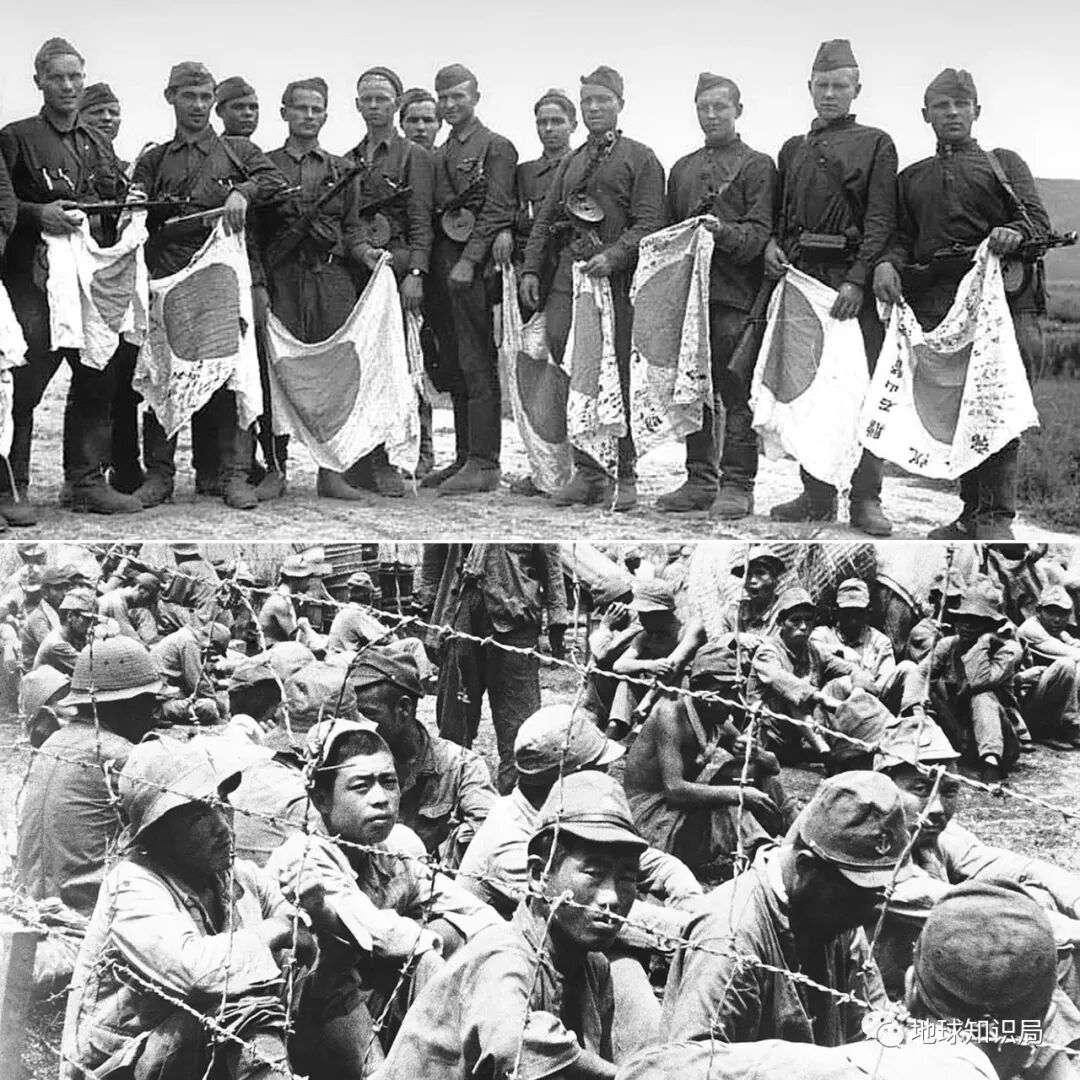 上图:苏军展示缴获的日军旗帜