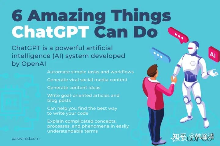 六种ChatGPT可以做的事情 在办公领域,微软的Copilot,支持Excel、Word、PPT、Outlook、Teams、OneNote,可以极大提高工作效率。譬如在word中,你可以让Copilot根据主题要求自动生成文章,并根据反馈做进一步的润色。在PowerPoint中,可以根据给定的主题自动生成演示文稿的初稿,包括主题、布局、图片等,并可以针对每一页文稿进行直观的自然语言交流和修改,整个过程自动化程度非常高。在Excel中,Copilot可以自动生成特定要求的数据透视表,可以回答诸如“分析数据并列出三个关键趋势”这样的问题,可以分析某一类数据变化背后的原因。总之,Copilot的加入使得计算机可以自动完成很多基础文档工作,极大提高Office办公套件的工作效率。