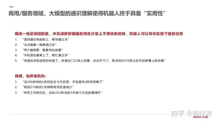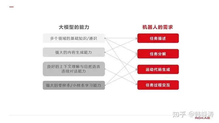 把以上能力映射到机器人领域,大模型适用的机器人任务就包括: