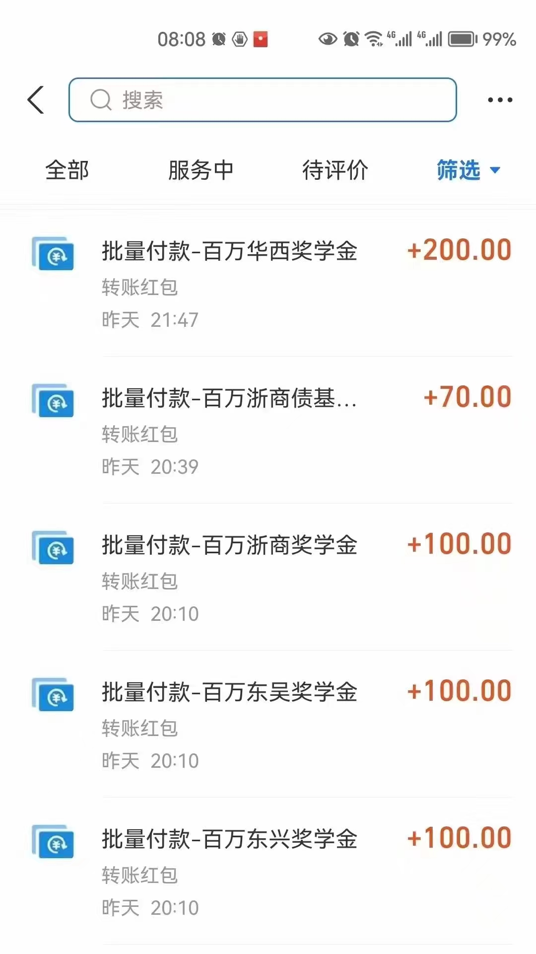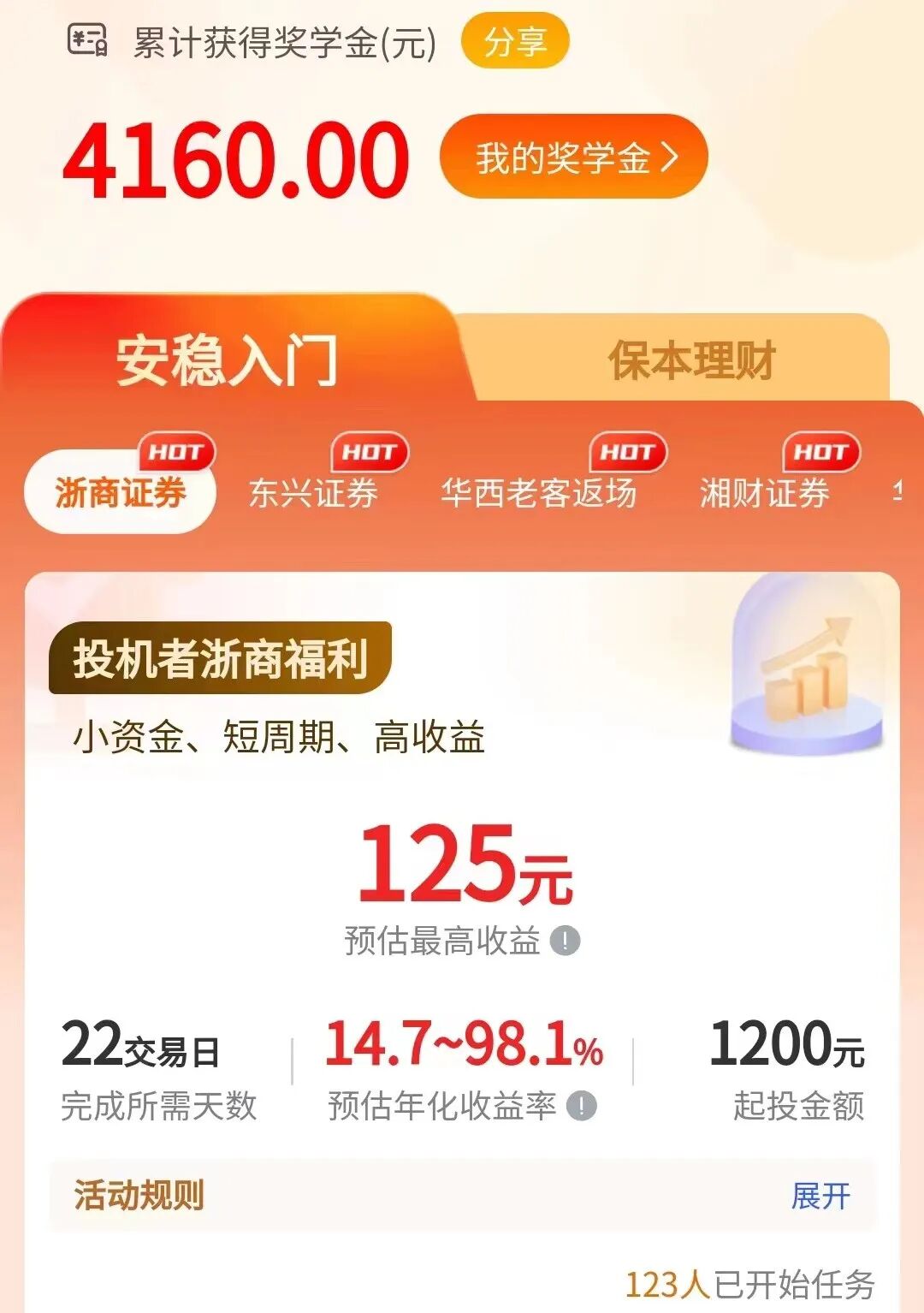 俱乐部先后上了20来个项目了,每个任务都可以获得至少100-300的奖学金。目前已经半年多了,成员突破了4000+,上线了20+个任务,已经有小伙伴薅了4160块。(见下图)助理更是发钱到手软,一次性发出去3w出头。(如下图)目前正在进行的任务有很多,东兴、东方、国泰、申万等等。上来一个无门槛任务直接获得50块奖励,直接覆盖29.9的门票,还能赚20.1块。后续几个月还安排了价值上千的低门槛任务,等你来,和4000位小伙伴一起薅出感觉。