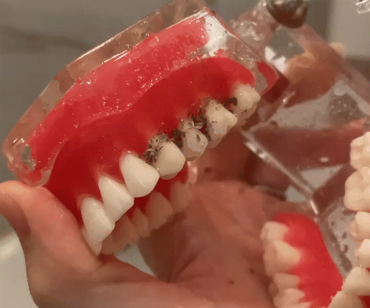 “因为80%口腔问题都是因为牙缝没清洁干净,日积月累所导致!”