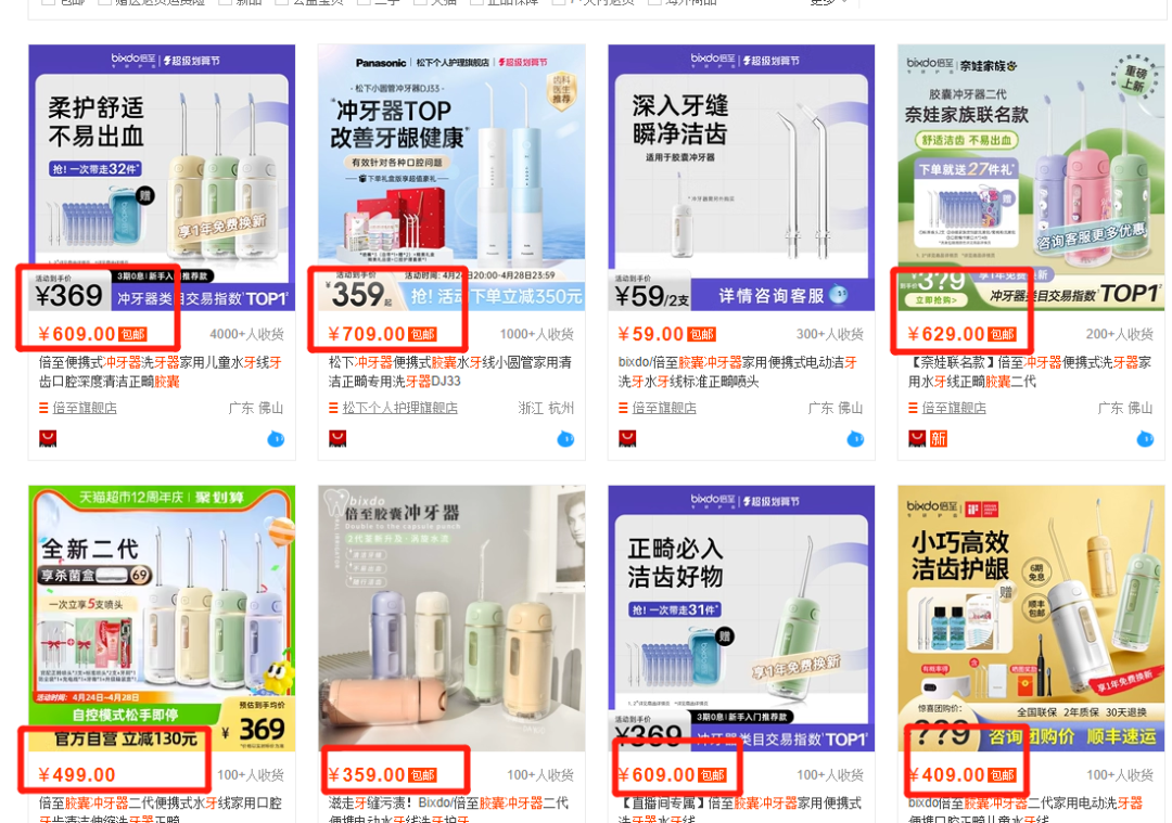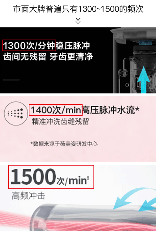 市面冲牙器技术大多停留在1300-1500左右,舒宁深耕产品效果自然来的更猛一些。