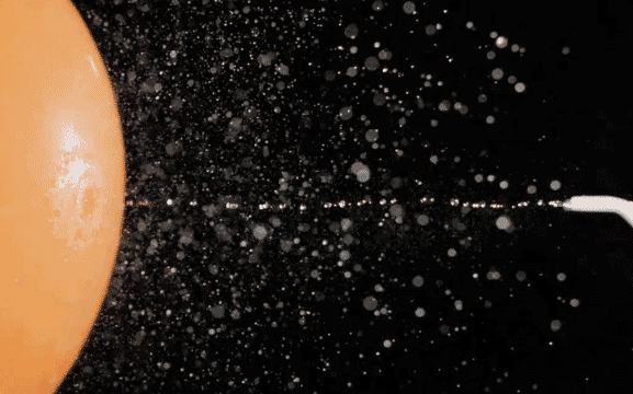 用它冲击薄弱的气球,不仅没爆,更是和气球来了个“duangduang”的SPA按摩。