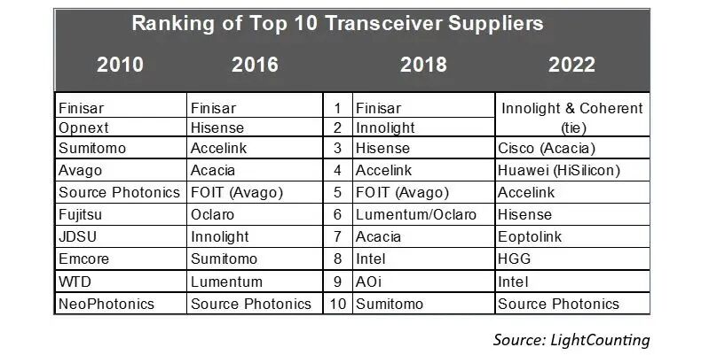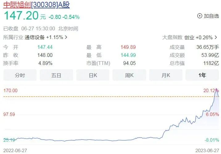 该文章内容仅代表作者本人观点,不代表本公众号立场。今年以来,全球光模块通信龙头中际旭创,股价猛涨4倍多。截至6月27日收盘,市值达到1182亿元,短短半年,市值大涨970亿左右。中际旭创的实控人,为73岁的董事长王伟修,其子王晓东也在公司担任副总裁,两人合计控制约18%的股权,身价暴涨百亿。中际总部在山东烟台,本是从事电工装备的,6年前,王伟修收购旭创,跨界光模块赛道,缔造了千亿传奇。一周前,中际旭创又以3亿元,取得君歌电子控股权,正式跨入汽车光电子领域。数倍的AI算力缺口,万亿的汽车智能化,父子俩都不想错过。ChatGPT一出,常人陌生的光模块领域,在传统云业务基础上,叠加了AI的需求,多了一大块市场。一个多月来的沟通会上,聊到市场和订单,中际旭创总裁刘圣等频繁提到“增长”,基调很高。全球科技企业竞逐AI大模型,光模块等配套算力基础设施,水涨船高。举个例子,英伟达投入量产的新型AI超级计算机DGXGH200,搭载256块GH200 Grace Hopper超级芯片,每块GraceHopper对应9个800G光模块。800G光模块的需求,比中际旭创管理层年初预计的,至少翻倍。管理层在4月下了个判断,今年全球800G需求结构里,AI的已超一半以上。“未来三年,暂未看到光模块市场的天花板。”800G在手订单充足,有中际旭创管理层乐观地说。5月中旬,英伟达和谷歌两家,据传更新对2024年800G光模块的需求指引,两家合计达700万只,相较行业预期的300-400万,直接翻倍。据披露,400G光模块价格在400美元以内,800G光模块价格在1000美元以内,据此推算,单单两家大厂,光模块的采购额将达数十亿美金。“公司800G相关产品,本年度及未来最终订单和出货量均存在较大不确定性。”王伟修不得不签发公告,泼点冷水降降温。“预计今年800G光模块的量不会很大,主要还是以200G、400G为主。”光迅科技董秘表示。行业机构LightConting预测,今年800G全球需求量为32.8万只。也有厂商预测,需求的大量增加,预计要等到明年或者后年。就今年订单量的变化,一位光模块从业人士向《21CBR》表示,他的感受是“不温不火”,市场并没有陡然变热。据LightCounting6月公布的榜单,2022年全球光模块TOP10,中国厂商占了7个席位,旭创和美国Coherent并列第一。父子起势快,关键一点,找对了人——生于1971年的刘圣。