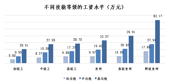 所谓工资价位,是指企业从业人员在报告期内的工资水平,包括基本工资、奖金、津贴和补贴、加班加点工资和特殊情况下支付的工资等。它在一定程度上体现了劳动力市场价格水平。分位值是指将数据由低到高排序,在数列中处于相应百分比位置的数据。它表示有相应比例的数据低于或等于该数值。一般分为低位数(10分位)、下四分位数(25分位)、中位数(50分位)、上四分位数(75分位)和高位数(90分位)。什么职业工资价位更高呢?分职业中类企业从业人员工资价位显示,从高位数来看,排名前三的分别为企事业单位负责人,每年31.2万元;金融服务人员,每年25.75万元;信息传输、软件和信息技术服务人员,每年21.64万元。从中位数来看,排名前三的职业分别是金融服务人员,每年11.88万元;企事业单位负责人,每年9.9万元;信息传输、软件和信息技术服务人员,每年8.72万元。分岗位等级企业从业人员工资价位显示,包括管理类岗位等级、技术类岗位等级、技能类岗位等级三类。管理类岗位等级指在管理岗位工作的人员在本企业岗位序列中的层级位置,包括高层管理岗、中层管理岗、基层管理岗和管理类员工岗。从中位数来看,高层管理岗为11.50万元/年,中层管理岗9.46万元/年,基层管理岗7.8万元/年,管理类员工岗6.18万元/年。技术类岗位等级指获得国家或专业评审机构认可的专业技术职称等级,包括高级职称、中级职称、初级职称。从中位数来看,高级职称为11.48万元/年,中级职称为8.32万元/年,初级职称为6.58万元/年。技能类岗位等级指按国家职业技能标准或行业企业评价规范设置的职业技能等级,包括高级技能及以上、中级技能、初级技能。从中位数来看,高级技能及以上8.04万元/年,中级技能6.8万元/年,初级技能5.49万元/年。可见,岗位、职称、技能越高,工资价位越高。从一些地方公布的工资数据也印证了这一趋势。![]()