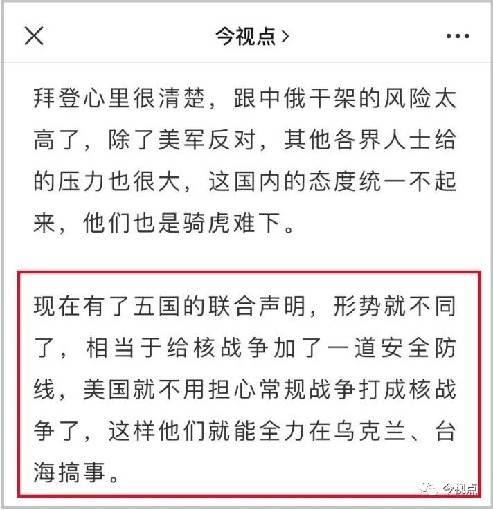 声明既不禁核,也不弃核,只是强调咱们几个都有核,互相别打了,尤其互相别扔核。但反常即为妖,我在去年1月7日写了文章,专门说这个声明,看起来是为了和平,其实却在为战争做准备。![]()