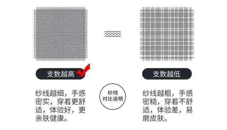 支数是纱线表示的一种方式,支数越高,纱线就越细,织成的面料也就越柔软贴身。