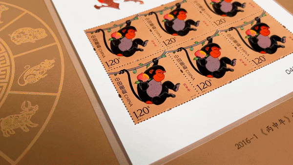 2016年,当时92岁的黄永玉时隔36年再度执笔,创作设计了《丙申年》猴年邮票,拉开了第四轮生肖邮票的序幕。《丙申年》猴票一套2枚,分别为“灵猴献瑞”和“福寿双至”,由中国邮政于2016年1月5日正式发行。发行之时,邮市再掀抢购热潮,有人不惜冒着寒风排队四天四夜。“灵猴献瑞”图案是一只一手捧寿桃、一手抓桃枝的猴子,生动传神,活泼可爱,充满喜庆的氛围。“福寿双至”绘有一只怀抱两只猴宝宝的金色母猴,画面温馨,蕴含阖家团圆、福寿双至的吉祥寓意。设计之初,中国邮政曾建议画一只大猴抱一只小猴,黄永玉则表示,国家已经开放二胎,可以画两个,最终成稿便是一只母猴抱两只小猴。黄永玉的诙谐幽默,给《丙申年》猴票设计增添了不少乐趣。在第四轮猴票发布仪式上,黄永玉不无感慨地说,他与中国邮政有着不解之缘。这也坐实了黄永玉大师猴票之父的地位。《传奇》典藏版珍邮册收藏的不仅仅是邮票,更是记录一代传奇黄永玉大师艺术人生的年轮,猴票之父的所有经典猴票全部收录,实在难能可贵。