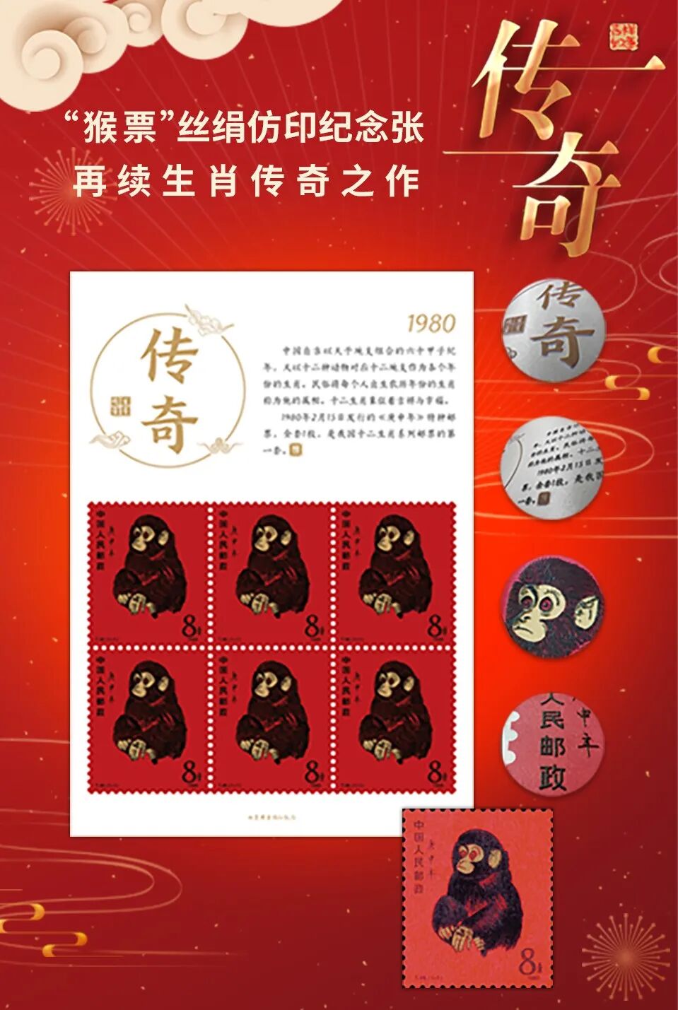 ▲80猴票与等比例摆台“80猴票”价格如此不菲,或许能从黄永玉的艺术身价中略窥一二。2016年,92岁的黄永玉时隔36年再次执笔,创作了2016年第四轮猴年生肖邮票,又一次让邮票收藏圈沸腾。现今黄永玉大师驾鹤西去,“80猴票”也早已高不可攀,想要将黄永玉大师设计的邮票收入囊中,特别是恐怕只能穿越到几十年前。中国邮政特别印制发行《传奇》经典专辑,致敬一代传奇黄永玉大师。特别收录:80版猴票仿印邮票画框、首发80猴票丝绢仿印小版张以及第四轮《猴票》小版张。同时将黄永玉大师设计的所有猴票珍邮全部集齐,汇聚成这样一套《传奇》典藏版珍邮册,再现猴票传奇经典,致敬黄老百岁人生。中国邮政官方授权下对“80猴票”进行再印,这在市场上非常少见,几十年一次的机会千万别错过了。特别是中国邮政首次印制发行的“80版《庚申年》猴票丝绢小版”,更是弥补了80猴票没有小版张的遗憾。另外特别打造了的“80版猴票摆台”,摆在哪里都彰显不俗品味。珍邮册汇集了黄永玉不同时期的猴票传奇之作,每一枚都是大师经典,每一幅都是艺术臻品。1.大经典:通过丝绢仿印,再现大名鼎鼎的 “80猴票”生肖传奇,精美奢华,等比还原。2.新传奇:80猴票小版张以丝绢仿印的形式面世,传奇猴票的最后一块拼图。3.全收藏:汇聚黄永玉大师不同时期的传奇猴票珍邮,真正的金猴全集。4.够珍贵:80猴票首次原比例仿印摆台,经典留存,珍贵大气。5.大保障:中国邮政官方出品,收藏证书齐全,全国真品保质,权威保障。这是一条记录黄老艺术人生的时间轴,收藏的不仅仅是邮票,更是猴票之父的艺术年轮,其珍藏价值不言而喻。