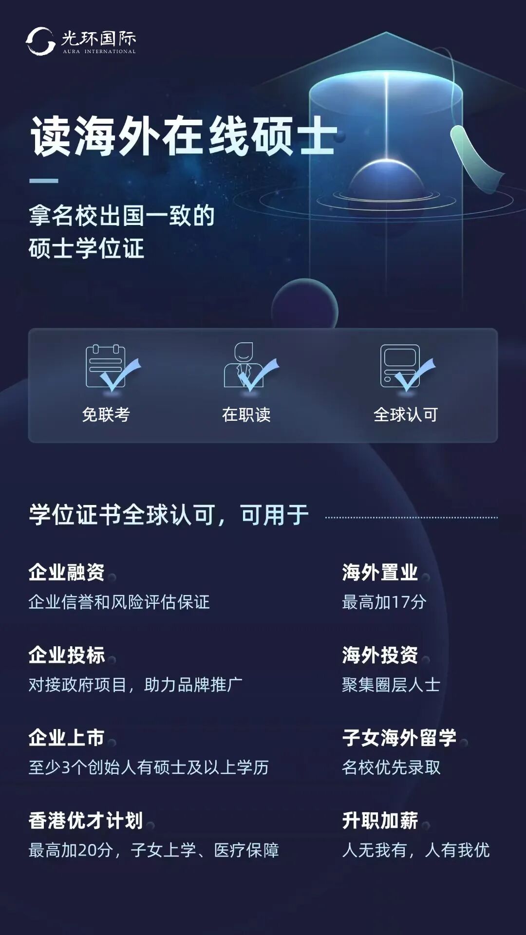 申请海外高校的硕士,如果语言达标、成绩优秀,可以直接申请、录取后直接出国攻读硕士学位;或者出国先学语言,达到后再入校进行硕士课程学习,同样不用参加全国统考,费用比较高,学位国家认可。