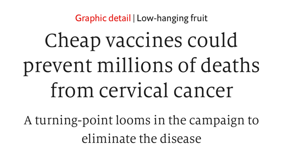 但是,还有两个好消息。一个是,WHO说,打一针HPV疫苗就可以了。这样就可以更快地打疫苗。另一个是,中国和印度的公司开始自己做HPV疫苗。印度的一家公司打算两年内做2亿针疫苗,比现在的便宜很多。它的疫苗可以让印度第一次全国都打疫苗。