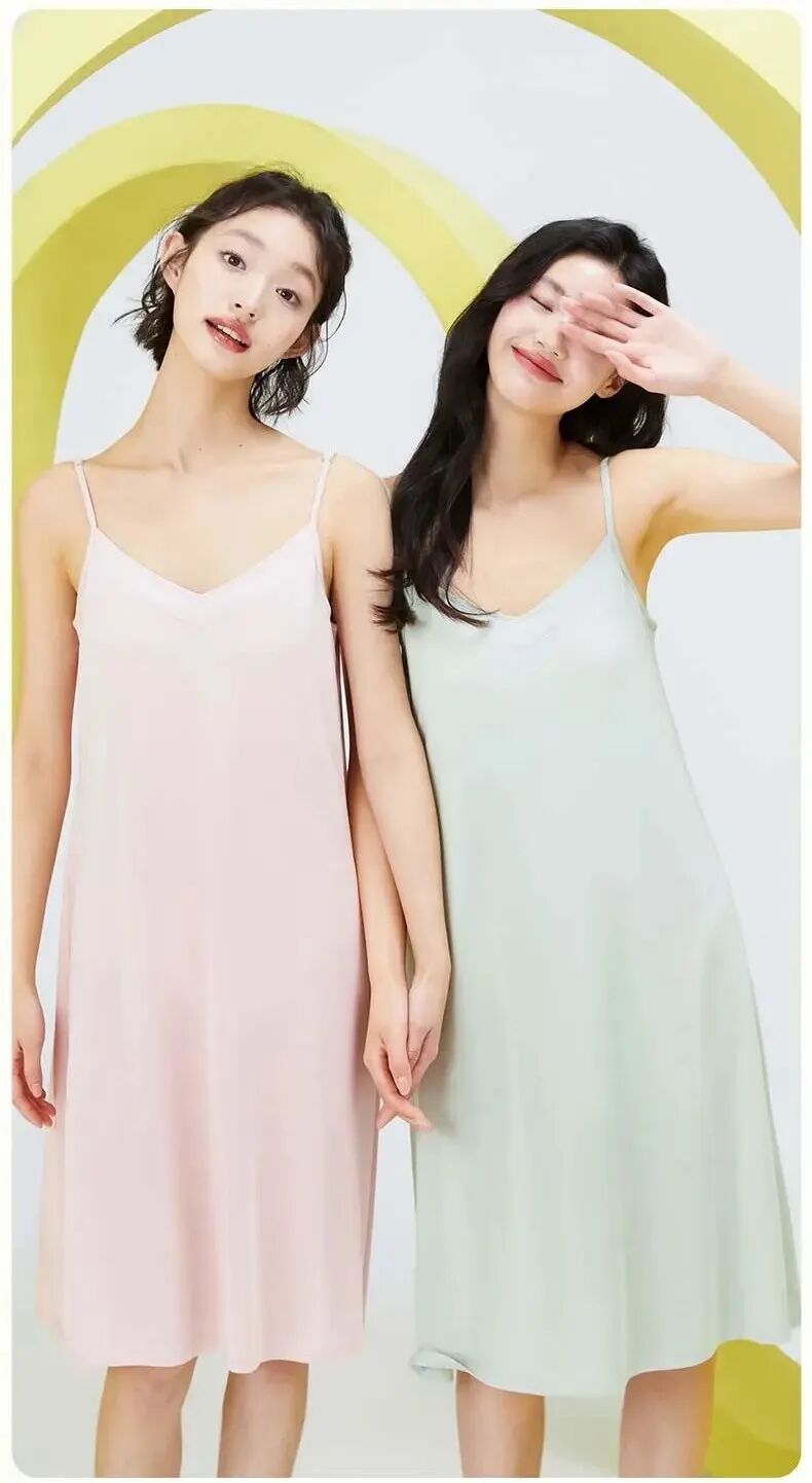 小小一片胸垫上有4000+个透气孔,加强了吸湿排汗,走动多了也不会闷热。厚度只有约1mm,还不足一个硬币厚,穿上身隐形无感。这胸垫以非常细密的针脚,全方位固定在了衣服上,不存在洗丢、洗折叠变形这种情况。而且设计简约,没有夸张的蕾丝边、大印花,可以像普通衣物一样,穿出家门。饭后公园散步,烧烤店买宵夜,取外卖取快递,随时出发,无需换装。尤其和父母一起生活,家中带小孩,或者合租、宿舍的朋友们,有这一件,真的避免很多尴尬~女生的肌肤本就娇嫩敏感,穿上面料不好的睡衣,会摩擦皮肤,弄得又痒又红,皮肤很易老化,干燥细纹更容易产生。这款家居服就耗时研究,在面料里添加了椰油成分,制作出这种新型黑科技椰油面料。椰油曾被称作是古老的防晒霜,还有驱逐蚊虫的作用。在几千年前的热带地区,岛民们就利用椰油来保护皮肤。如今,它也是当今所公认的皮肤保.湿成分,不少大牌的护肤品和化妆品都以它为主要成分。不添加任何化学成分,自带的抗jun效果就超过标准。面料中的fu离子含量也丰富,穿着它驱散你一整天的疲惫,梦都更香甜。这款家居服穿起来,有着真丝的质感,却比纯棉更顺滑透气。单说这面料的质感,像是触摸婴儿的皮肤般柔软,穿在身上很轻盈,垂坠感也很好,舒服得根本不想脱下来。家居服的面料采用了70%再生纤维素纤维+30%聚酯纤维,通过天然混纺工艺,让肌肤感受绵柔触感,自然舒适。因为再生纤维素纤维和聚酯纤维都是非常透气有弹性的面料,就算出了汗有潮气,它也能很快地吸湿、排湿,透气性非常了得。还有那恰到好处的弹性,再也不怕半夜被衣服裹住,翻不了身了。这种天然纤维的稳定性也很好,就算空气干燥,它也不易起静电,不易起球,非常耐穿实用。将它作为家居服,换季穿也清清爽爽,随意扔进洗衣机也不变形。因为质地和真丝相仿,所以垂感和质感都非常好,不会像真丝一样娇贵易皱,随意穿出门也不显掉价。许多穿过的朋友,都在反复回购,岂止一个“舒服”,真的是神仙家居服!今天给大家带来的内茵家居服系列,有吊带背心、吊带睡裙、口袋睡裙以及睡衣套装,每一款都各有各的美。