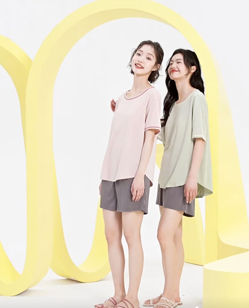 当然更日常的还是睡衣套装啦,清爽治愈的颜色,加上得体的剪裁,平时可以在家里穿,如果懒得挑选衣服,外搭一件外套,通勤穿也没问题。简单的圆领上衣,露出纤细的锁骨,宽松的睡裤,把腿最粗的部分挡住,显瘦一百分。裤子是不勒腰的设计,两个隐形的口袋,垂坠的布料走起路来都生风,休闲又好看。值得一提的是,这个套装中的裤长也可以选择,有三分裤、五分裤两种长度可选。清水蓝、樱花粉、薄荷绿、椰奶白上衣,搭配不同的裤子,一共有5款可选,家居服也能又美又元气。
