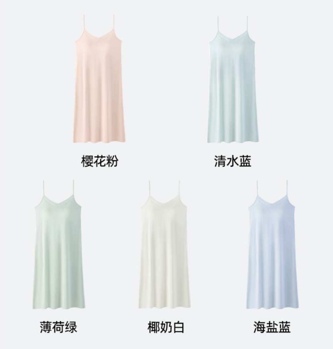 从左至右:短袖套装(薄荷绿、樱花粉)、吊带睡裙(樱花粉、薄荷绿)、吊带背心(樱花粉、薄荷绿)、口袋睡裙(治愈蓝)这件吊带背心不仅可以当睡衣穿,平常当内搭穿也是个非常不错的选择。再加上一件宽松的衬衫,就可以轻松出街了,懒人穿搭一样也可以美美的。背心款还有一个小细节我非常喜欢的,就是它的可调节肩带设计,不同身材的朋友穿都合身。内茵防凸点背心共有治愈蓝、薄荷绿、清水蓝、樱花粉、椰奶白5色可选,都是非常治愈独特的颜色。家居服里,我最爱的就是裙装,因为懒,不用穿裤子,好方便。这款睡裙版型采用了H版型,下摆做了经典的波浪褶皱,上身既显瘦又显高。不管是穿出门购物还是下楼吃个饭,穿着窝在沙发里,柔滑的它,穿上身非常轻松惬意。