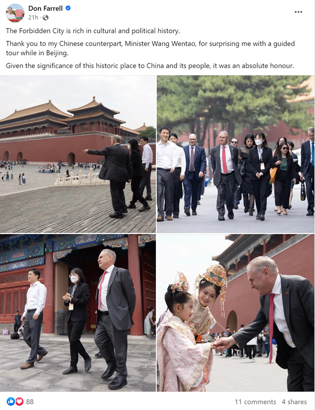 当时外界对此消息半信半疑,结果到了5月11日,澳大利亚贸易部长法瑞尔果然应中国商务部邀请抵达北京,开始访华行程。