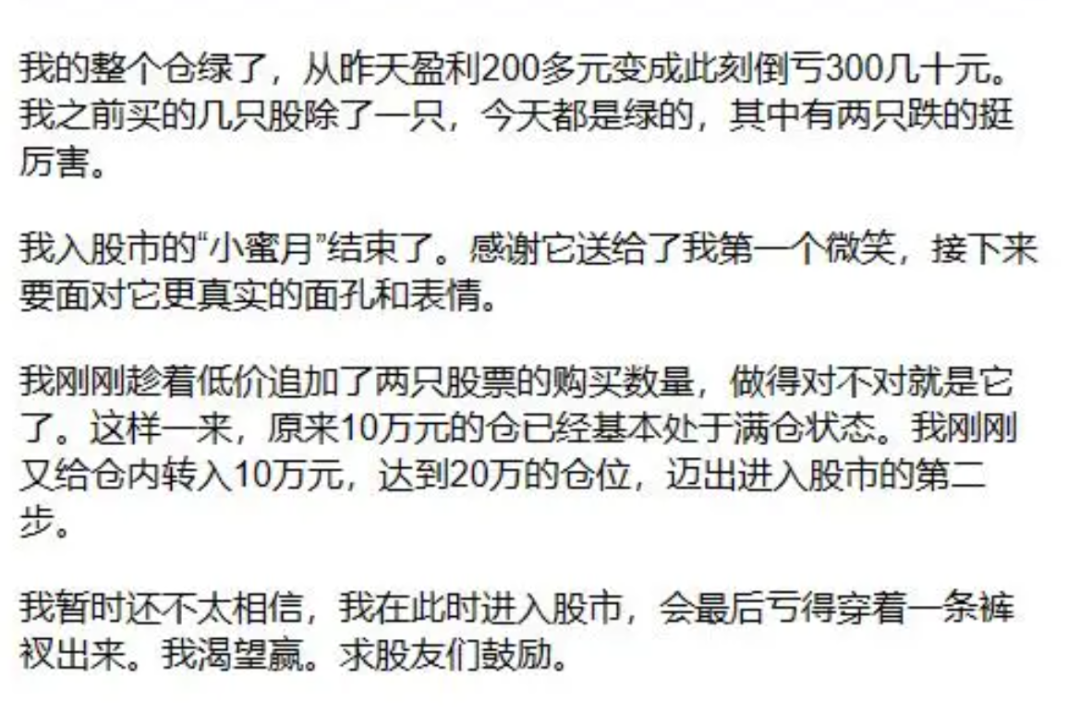 每天10个W转进去抄底,坚持个一年半载总能涨回来,