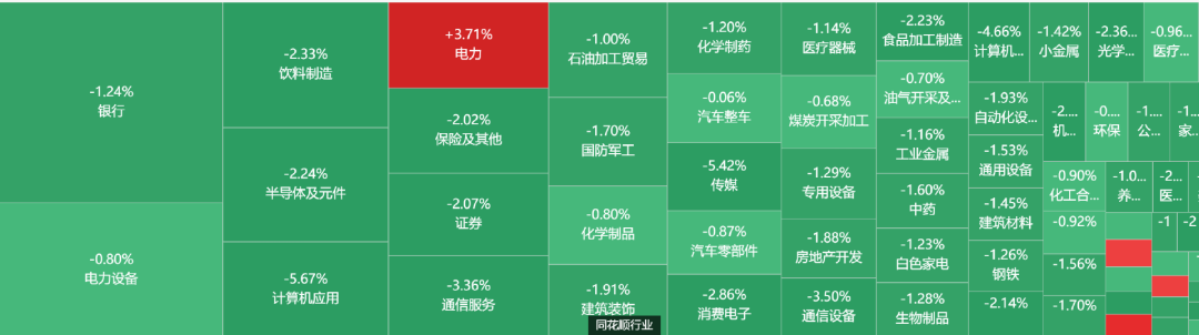 全天仅有电力板块收红,这种情况肯定是大资金在出逃