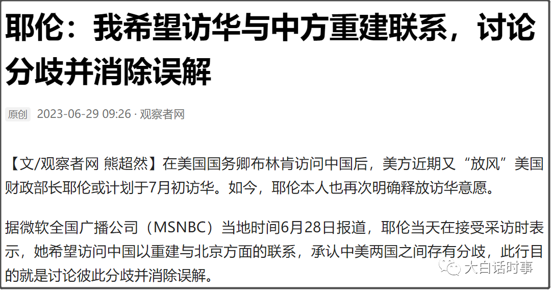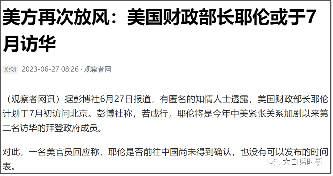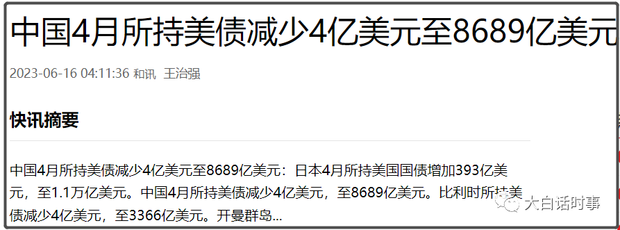 一方面是美国媒体又在放风说拜登可能要实施新的AI芯片出口限制,还有对华投资新限制。当美国可以动粗碾压你的时候,绝不会跟你多说两句话。当美国开始跟你打嘴炮的时候,说明美国已经没有底气“以武服人”。美国虽然很想跟我们直接脱钩,但又知道直接脱钩会给美国带来毁灭性灾难,所以美国才会显得这样精分。只能扯着一些看起来冠冕堂皇的理由,打着去风险化的幌子,来进行长期软脱钩。具体到某个人,比如布林肯也显得很精分,一边说寻求与中国“和平共处”,一边又说美国与中国的关系是“长期竞争”,没有“明确的终点线”。此外,布林肯前几天接受采访时,还说:“美国将继续做中国不喜欢的事情,说中国不喜欢听的话。”另外,布林肯在说这句话的时候,还说了句“他们也在做同样的事情。”其实,双方都很清楚,未来很长一段时间,彼此都会为了自身利益,做对方不喜欢做的事情,没有谁会轻易妥协。布林肯访华之后,中美关系也没有出现缓和,反而有博弈激化的态势。只不过,布林肯访华,让中美关系从前两个月“只打不谈”,变成“打打谈谈”。而是边打边谈,双方在谈的时候,反而盘外招会“打”得更激烈。比如,美国最近放风说要出来AI出口新限制,还有对华投资新限制,都有点在给耶伦访华,虚空造牌的意思。但我们跟美国已经如此激烈博弈5年了,我们并不吃美国这一套。所以,我们对于中美关系的未来走向,要做好自我预期管理,要有持久战的准备。6月27日,美国媒体就放风称,美国财长耶伦可能于7月初访华。对此,美国官员回应称,耶伦是否前往中国尚未得到确认,也没有可以发布的时间表。这个是美国一贯舆论套路,在事情还没确定的时候,就先故意透露消息给媒体,进行炒作,起到投石问路的效果。6月28日,耶伦倒也有亲自出来说,希望访华与中方重建联系,承认中美两国之间存有分歧,此行目的就是讨论彼此分歧并消除误解。耶伦能不能访华,具体啥时候能访华,仍然还是要以我们自己官宣为准。不过,之前布林肯访华,我也跟大家分析过,耶伦大概率是下一个最快访华的美国高级官员。一个是因为,耶伦在拜登团队里,算是相对比较鸽的,耶伦作为学者型官员,不像其他几个对我们敌意那么强,当然耶伦在美国现在的政治氛围里,也很难说会对我们友好,只能说相对还好一些。现在美国债务压力大,最着急的自然是耶伦,所以耶伦才会今年1月份,就开始一直说要对我们访问。1月,美媒称,美国财政部一个工作团队将于2月访华,为财长耶伦访华铺路;2月,耶伦表示,与中方就经济问题加强沟通很重要,希望能访问中国;3月,白宫称,中美正协商耶伦和商务部长雷蒙多可能访华事宜;但之前几次,耶伦的访华,都因为气球事件导致双方沟通渠道中断,而都没有了下文。这一次,因为布林肯访华,恢复双方一些沟通渠道,才让耶伦访华有了可能。所以,着急兜售美债的耶伦,会成为布林肯之后,最快访华的下一位美国高级官员,这个并不奇怪。同时,我也要跟大家强调,耶伦来不来,是一回事,我们买不买美债,是另外一回事。等耶伦来的时候,肯定会有人那这件事情过度解读,一看耶伦来,就说我们要买美债。另外,大家也要区分清楚,美国财政部每个月公布的外国投资者持有美债数据,只是按渠道去区分。因为美债是不记名的,所以美国财政部只是根据交易结算的渠道,来归类。美国公布的我们持有美债8689亿美元,并非都是官方持有,有一部分也是市场投资者持有。所以,每个月的持有美债波动数据,也不完全是官方行为,有一部分也是市场自然波动。比如,3月因为硅谷银行破产,导致市场有一个集体的抄底美债避险行为。所以,3月份,美债前十大持有国,都是全部增持,包括我们3月也增持了204亿美元的美债,这更多只是市场投资者的行为,不能解读为官方行为。我们如果是官方增持美债,起码是要每个月增持大几百亿美元,并且要连续增持十几个月,才算得上增持美债。2008年-2010年,我们是3年增持了6000多亿美元的美债。按照当时的增持力度,对美国来说,我们起码得增持超过2万亿美元的美债,才能缓解美国当前的债务危机。我们当然是没有这个能力,所以,大家是不用担心我们会跑去接盘美债,因为本来也没这个能力。像美国在6月16日公布的美债4月持仓数据,我们4月是小幅减持4亿美元美债,而日本4月则大幅增持393亿美元美债。这个也符合我上个月的判断,认为日本接下来可能会持续大幅增持美债。日本也没有能力去拒绝美国,基本就是美国一个大号血包。现在美国对债务危机的应对,就是一个字,“拖”,能拖多久是多久,能让我们多买一点是一点。不过,美国一点求人办事的态度都没有,还一副趾高气扬的状态,还试图搞虚空造牌和极限施压。既然双方目前都是“拖字诀”,自然就会出现这样“边打边谈”的情况。