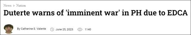 关于这一点,菲律宾前总统杜特尔特出来说话了。据环球网转引菲律宾《马尼拉时报》6月25日报道称,菲律宾前总统杜特尔特在一档节目中发出警告:由于美国在菲律宾设立《加强防务合作协议》(EDCA)站点,若第三次世界大战发生,菲律宾可能会被卷入其中。