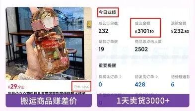 最刷新我三观的是,阿英在抖音开店卖货,但她却不用花钱囤货,有人买一单,她就去货源网站下一单,一件代发,转手就能赚个几百块。