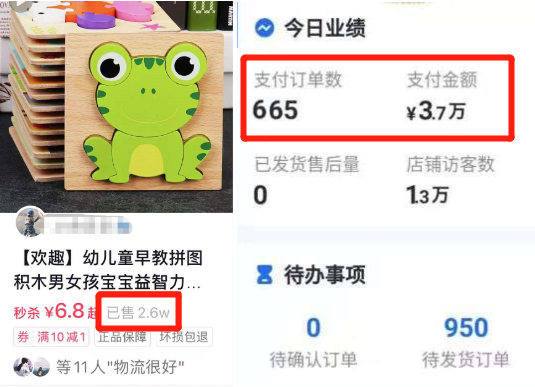 阿英之前给孩子买过一个益智拼图,她把拼多多便宜货源复制上架到抖音小店,借着平台推送流量,加价两成照样卖了上百单!