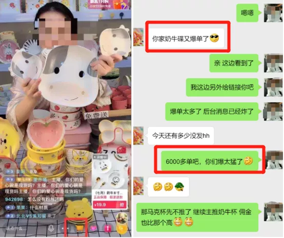 店里一款奶牛碟,因为联系到一个优质带货主播,一场直播销量6千单,剔除主播佣金,当天纯利润70493.84。