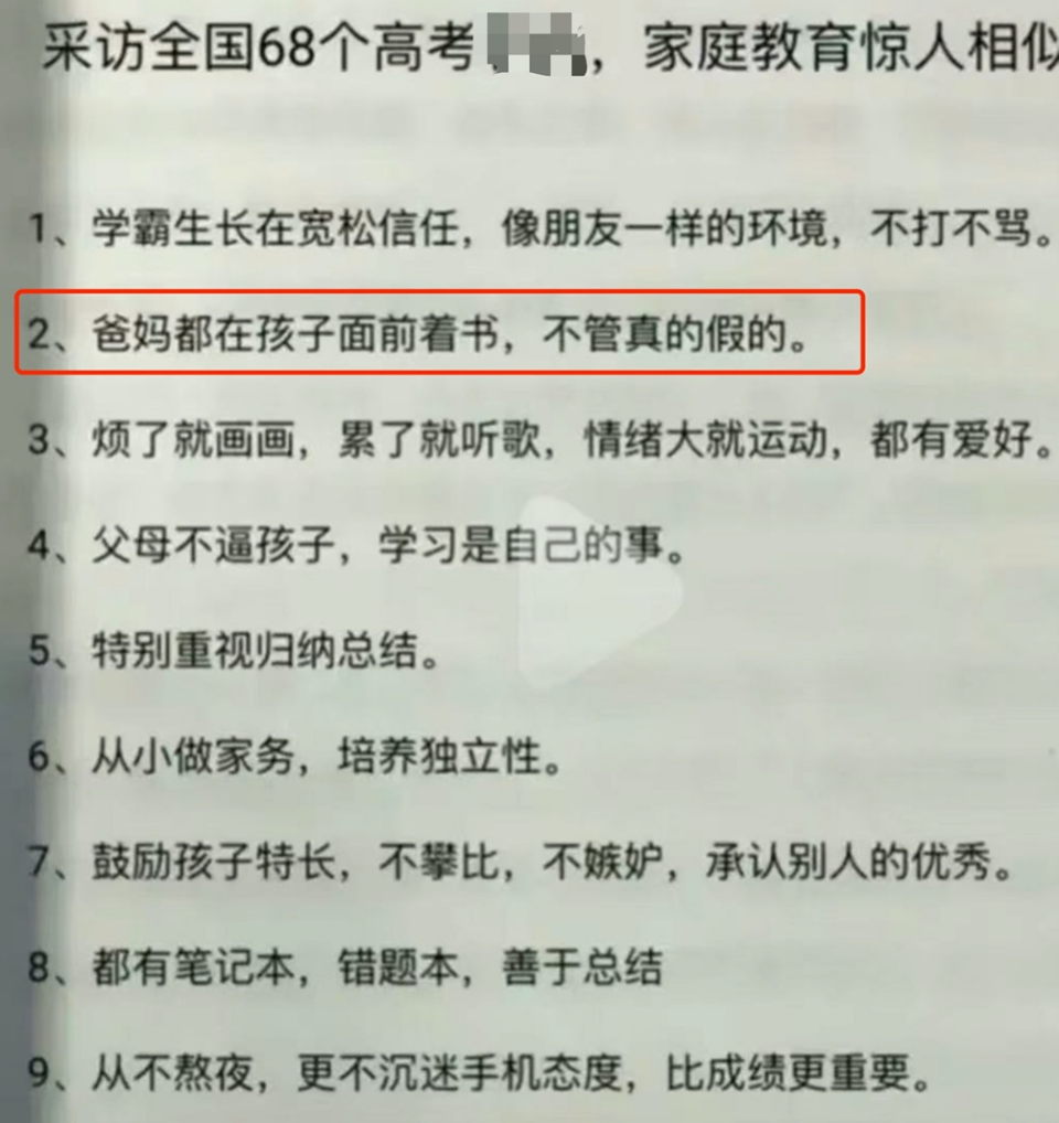 网上有人总结了全国68位高分学霸家庭的共同之处: