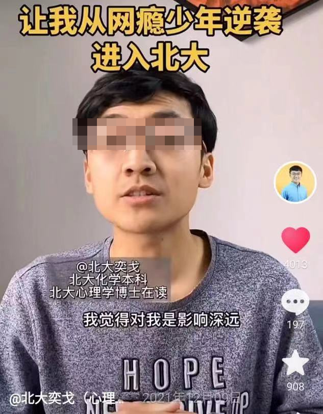 前段时间,正在攻读北大心理学博士的奕戈,发表过一段视频。