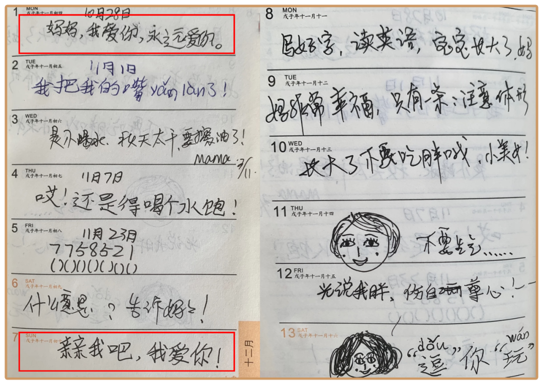 无意看见网友 @青柑普洱 翻出 9 岁时和妈妈的留言本,我的心颤抖了一下。