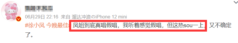 然而,徐小凤在现场的表现引起了外界的质疑。许多对她并不熟悉的网友质疑她的专业能力,认为她的稳定表现并非真唱,而是对口型假唱。关于徐小凤是否真唱假唱的问题成了外界热议的焦点,"徐小凤假唱"甚至在网络上创建了词条。