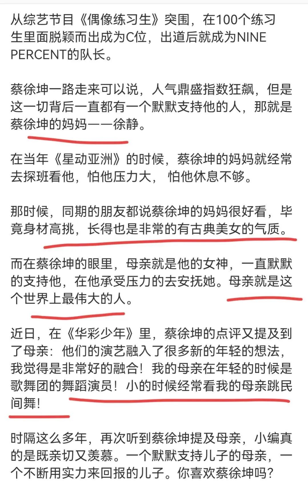 内心处于何种状态,才会说出如此不妥的形容词?要知道,蔡徐坤的母亲徐静以及她的儿子,早年都非常珍视这批跟随他们的粉丝。