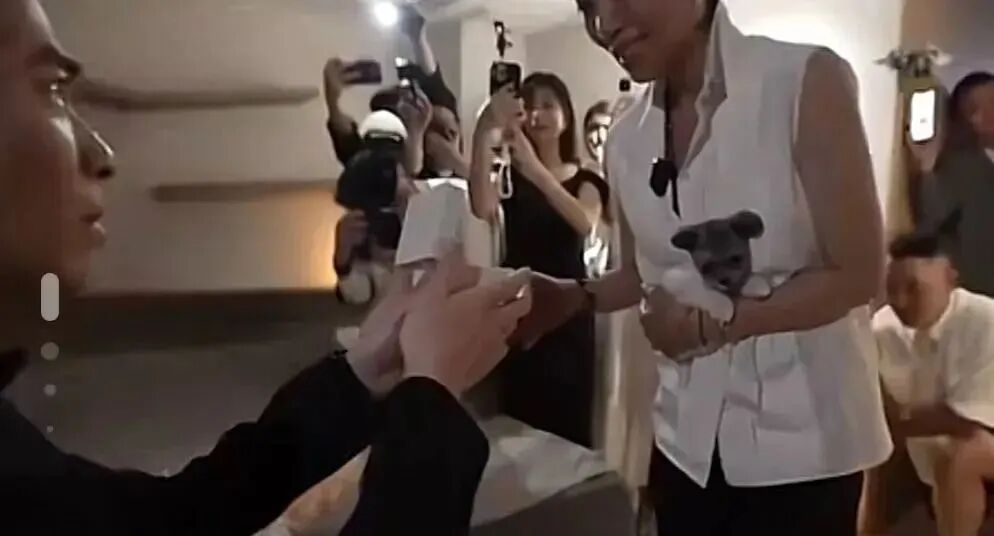 他们的求婚现场可谓是热闹而浪漫,处处弥漫着玫瑰、蜡烛和鲜花的香气,小提琴和钢琴的演奏更是温馨动人。