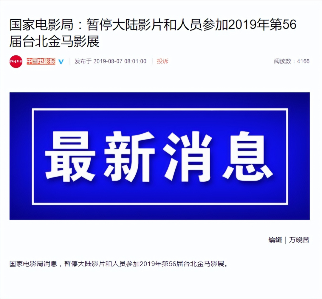 随着第56届金马奖颁奖典礼的临近,国家电影局出人意料地宣布,将暂停所有大陆电影及从业人员参加2019年度的台北金马影展。这个消息的发布后不久,包括香港和大陆的一些明星纷纷表态,他们将不会参加金马奖的颁奖典礼。