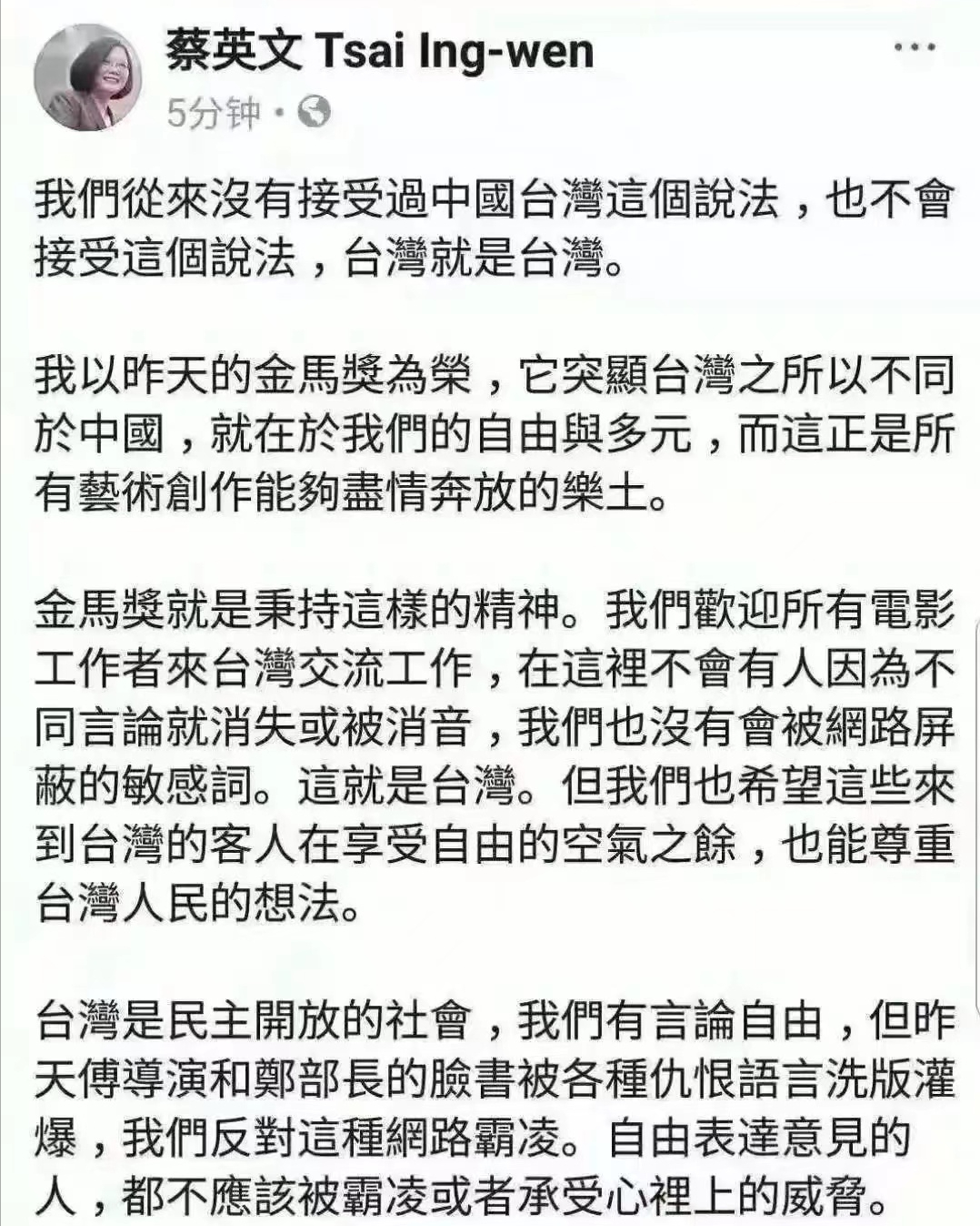 即便在后来的颁奖礼上,大家都在强烈反击,反复强调只有一个中国的事实。