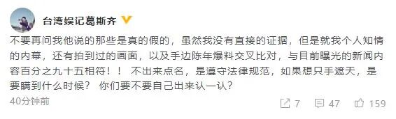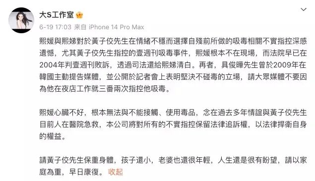 葛斯齐确实很头铁,直接实名上线爆料,大S经纪人当然不能惯着他了,当晚就发声明辟谣,称葛斯齐在节目上爆料药头认识大小S是不实传闻,并表示已委托律师搜证。