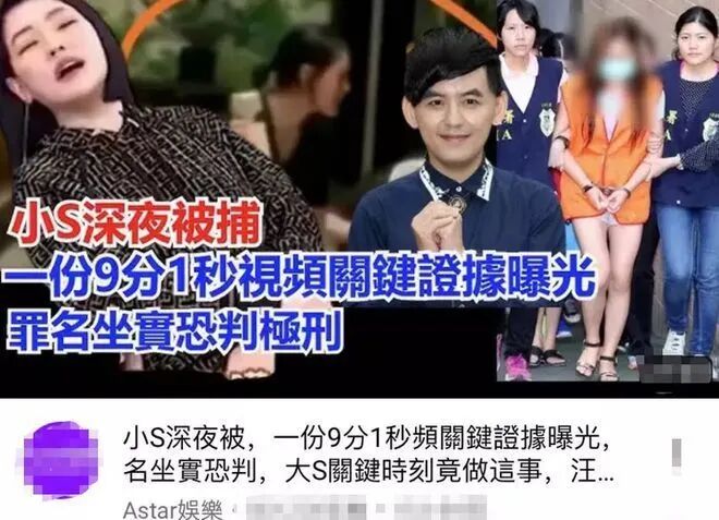 当然,今天还有媒体爆小S深夜被逮捕,为减轻自己的罪责,小S选择出卖姐姐大S,将其手机中的一段9分零1秒的视频拿出举证。