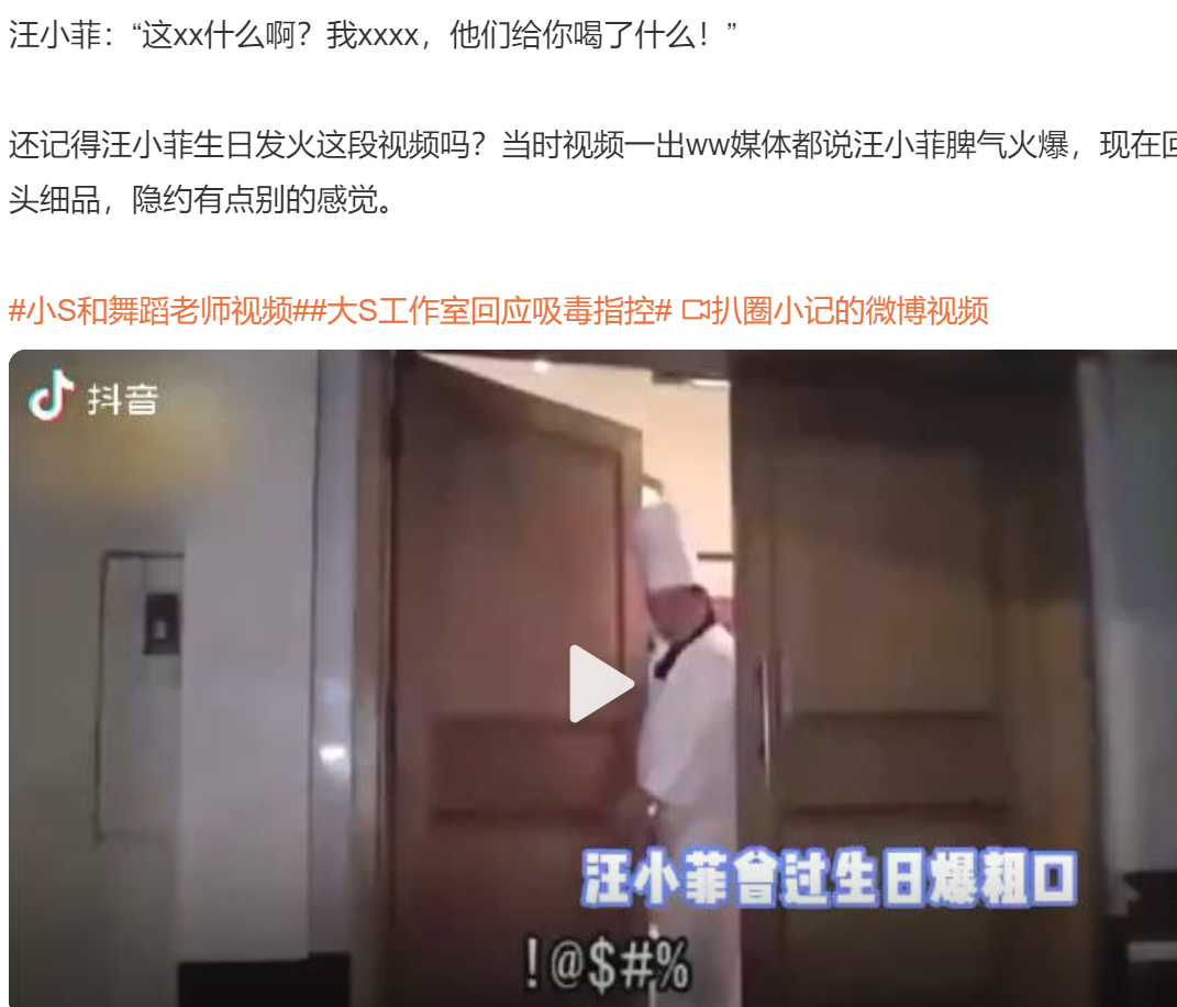 此前就曾被曝出相关视频,在大S生日宴上,小S曾经偷偷给大S下药,被汪小菲发现之后大声质问小S给其姐姐吃了什么,并且还伴有砸东西的声音。