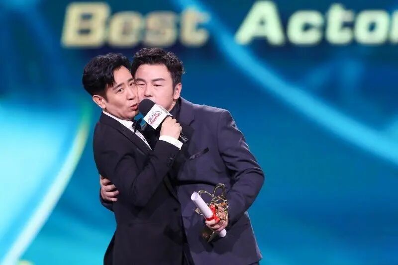 最后,他以一个拥抱和贴面的方式,感谢了建议他参演《人世间》的于和伟。